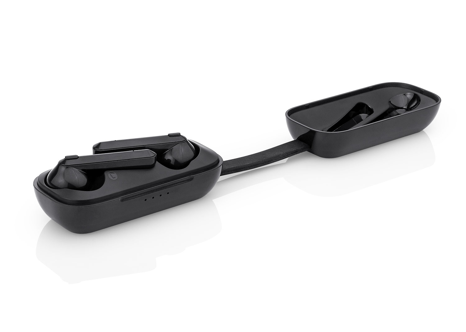 Audífonos inalámbricos TWS. Bluetooth versión 5.0, en estuche de carga imantado.Capacidad de la batería 240mAh. Incluye cable Micro USB para carga.