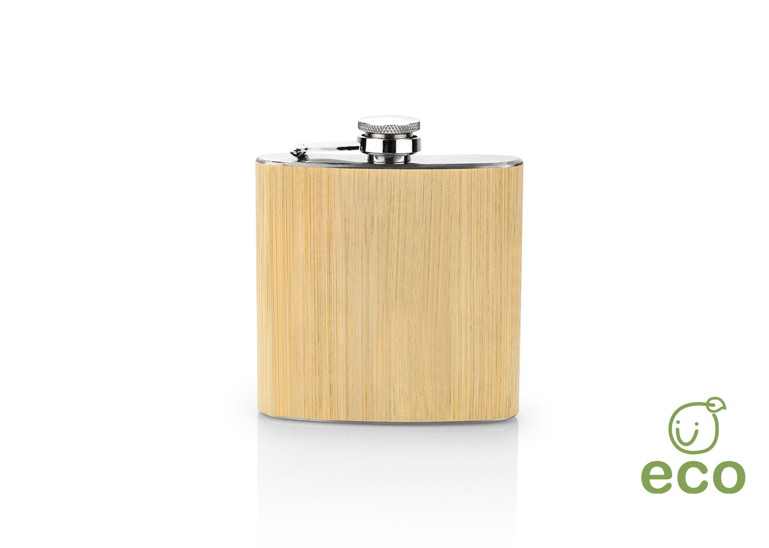 Mini licorera en presentación fácil llevar y tomar su bebida favorita. En acero inoxidable con acabado exterior en Bambú. Capacidad 175ml / 6 Oz.