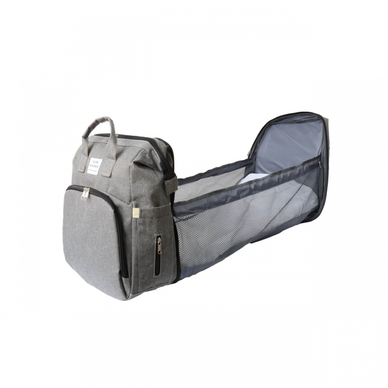 Morral expandible con cambiador de bebes, elaborado en poliester liner, compartimento para bebe con base acolchada impermeable, varas plásticas tipo carpa para laterales.