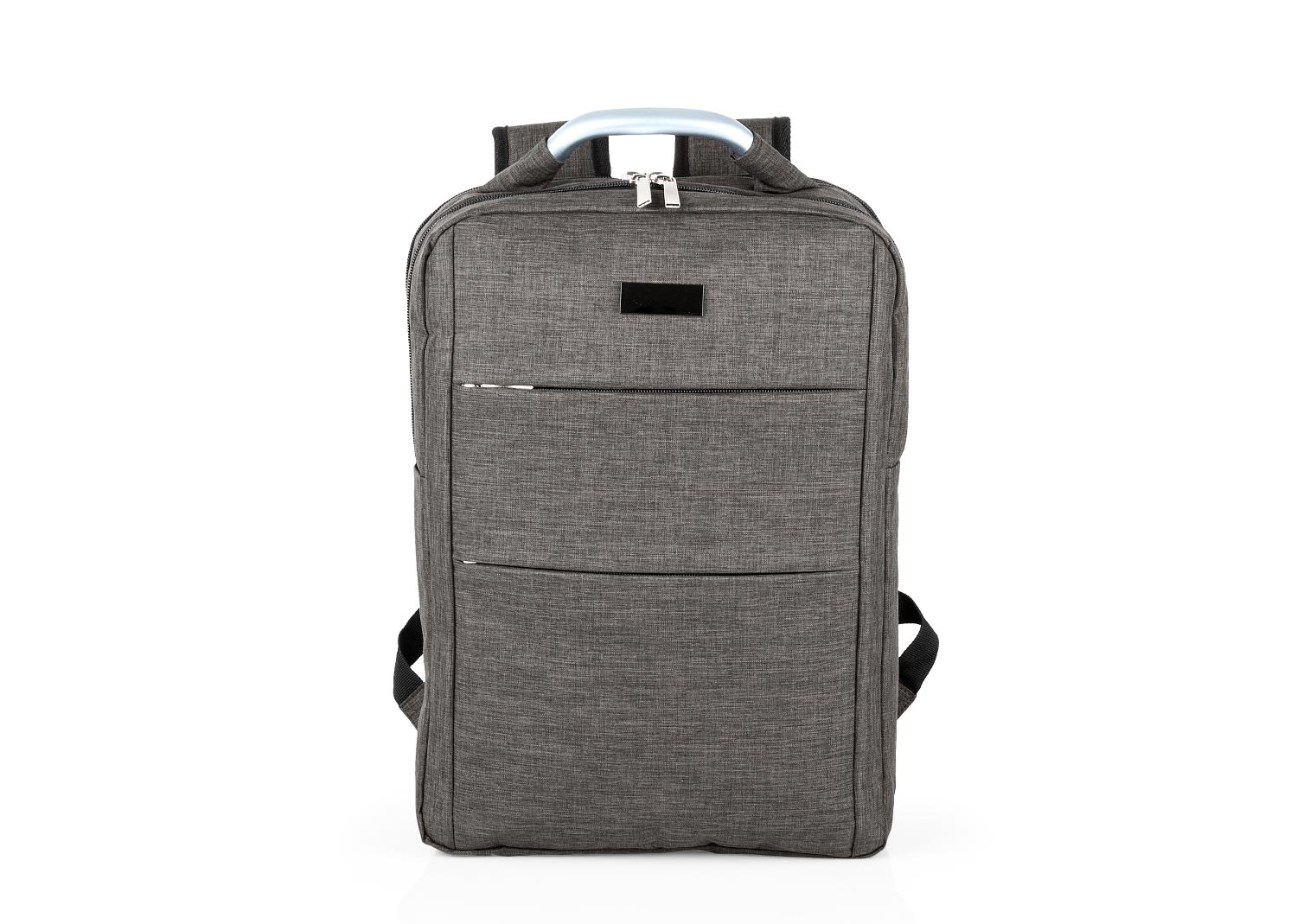 Morral con agarradera en Aluminio y cargaderas ajustables, un compartimento con velcro para portátil de hasta de 14” y el otro con bolsillo interior para bolígrafo y libreta. Doble Bolsillo frontal con cierre de cremallera. Incluye placa metálica para marcar láser.
