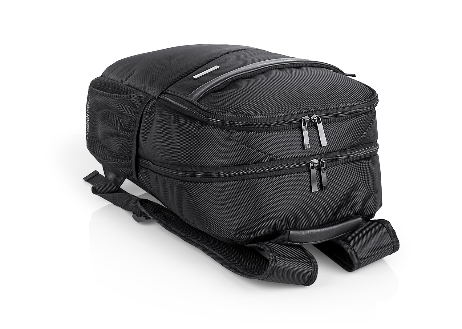 Morral para laptop con espaldar ergonómico y cargaderas ajustables y acolchadas. Cuenta con un bolsillo frontal, dos bolsillos medianos con compartimentos especiales en el interior, y un bolsillo principal con un compartimento para dispositivos portátiles de 15". Además, tiene dos bolsillos laterales de malla. Incluye una placa metálica para marca láser.