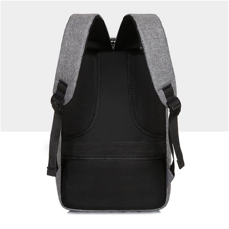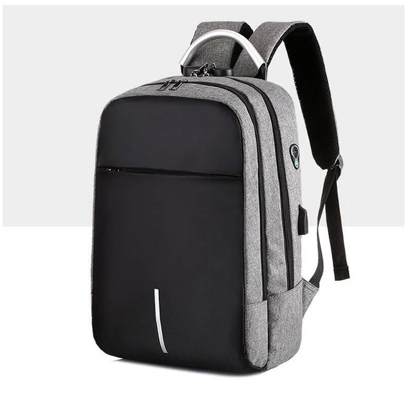 Morral en lona liner, manija en aluminio, seguro de apertura, cable USB, bolsillo para laptop, orificio para audífonos, espaldar acolchado, bolsillo en la manija.